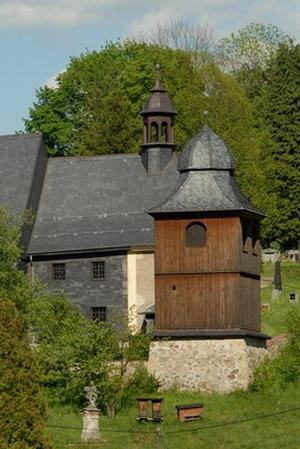 Szczególne znaczenie ma wczesnobarokowy drewniany kościół św. Krzysztofa. Należąca do niego wieżyczka i wolnostojąca drewniana dzwonnica góruje nad wsią ze zboczy Masywu Ještedu i do dziś świadczy o pobożności miejscowej ludności. W ostatnich latach dzięki darowiznom można było odrestaurować kościół i przywrócić mu jego dawny blask. Warto przyjrzeć się wnętrzu z bogatymi rokokowymi malowidłami.