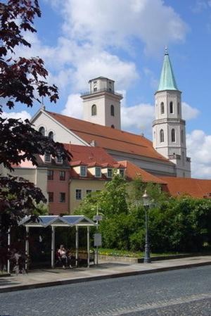 kostel sv. Jana/Johanniskirche: byl poprvé zmíněn ve 13. st. Název dnešního ev.-lut. farního kostela ukazuje na působení johanitů. Po zničení požárem měl být kostel přestavěn v gotickém stylu, tento záměr nebyl ale kvůli statickým problémům realizován. Erst Karl Friedrich Schinkel tyto problémy vyřešil a v 19. st. dokončil přestavbu v klasicistickém stylu. Obě věže utváří klasicistický kostel sv. Jana/Johanniskirche. Po dlouhou dobu byl tento chrám boží zanedbáván. V posledních letech byl oživen: je v něm Euroregionální kulturní centrum/Euroregionales Kulturzentrum.