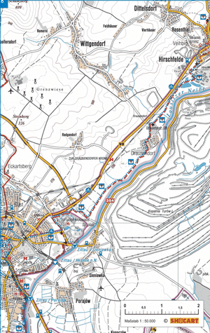 Droga z Hirschfelde do Zittau wiedzie cały czas nad Nysą Łużycką, która oddziela Niemcy i Polskę. Kto patrzy uważnie, spostrzeże liczne pozostałości dawnego krajobrazu kształtowanego i wykorzystywanego przez klasztor: odcięte starorzecza, rozległe łąki w dolinach czy założone przez zakonnice z St. Marienthal stawy i groble. W czasie deszczu lepiej skorzystać z asfaltowej ścieżki rowerowej, która biegnie równolegle do drogi krajowej 99. Od wejścia do Żytawy idziemy chodnikiem wzdłuż głównej drogi (Görlitzer Straße) prosto do kościoła Marii Panny.